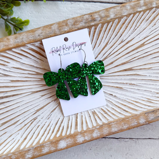 Sadie Skinny Bow - Green Glitter