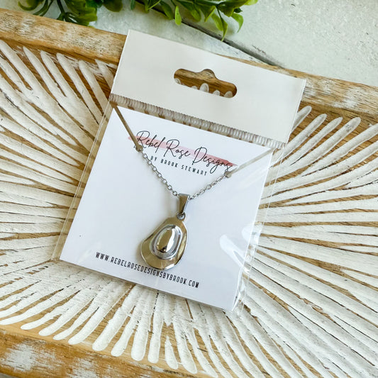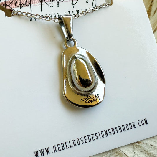 Stainless Steel Necklace - Howdy Engraved Cowboy Hat